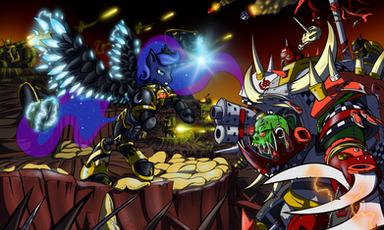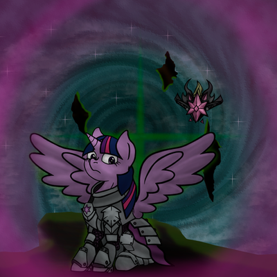 Here's the second of my Deathwatch Pony pictures, Librarian Twilight. I'm much happier with this one than I was with AJ's, probably because I didn't draw the whole thing at stupid o'clock at night. Also, I tried putting in a simple background to help with this picture, and I think it worked quite well.