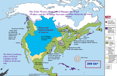 The Americas were uninhabited when Europeans arrived: given the lack of a "great circle route", it was a good deal further from Europe to Greenland. Fortunately for colonists lacking a native hand up with corn and so on, the Creator provided several useful local plants and a rich variety of mega-fauna which made colonization easier. Still, the Spanish American nations, without locals to till the soil or dig up gold and silver, were settled rather more slowly than OTL, and have a rather different political history. Due to the lack of local labor, the population tends to be rather more African, ethnically, than OTL, and there are several "African nations" on the continent as well as in the Caribbean. (And I shan't even mention Evil Pseudo-CSA Greater Argentina). On the other hand, the Empire of Brazil is no further from Africa than it is OTL, and in our world never had a dense and easily exploitable native rural population: if a bit smaller, it is otherwise similar to OTL.