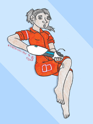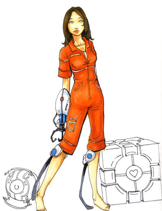 My Chell is a re-skinned Zoey from Left 4 Dead due to the fact that her official models have no facial movement. It sort of looks like both of her appearances as a result.