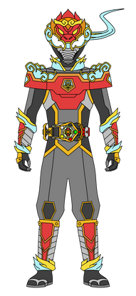 Form Description: Doken transforms into his main form by inserting the Wild Coyote Wonder Ride Book into the middle slot of the Seiken Swordriver and pulling out the sword. In this form, his kicking power and agility are increased, making him a specialist in one-to-one combat. He can control the local flora and summon an energy coyote to aid him in battle.