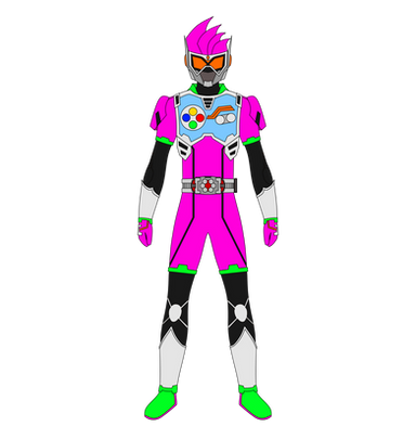 Form Description: Astra transforms into his main form by inserting the Mirai Slasher Gashat on the Gamer Driver, before pulling off the lever to ascend from his Level 1 form into his Level 2 form. This form is mainly speed and agility-focused, being able to jump to great heights and deliver powerful kicks.