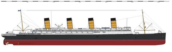 WIP 8: Revised forward and aft superstructure design. Modified Promenade windows as well as stern section of the Sun and Sports Deck. Changes to funnel colors and added bits of machinery and railings on the 'roof' deck. Changed window and door arrangement on aft B and C deck. Added concept portholes on D Deck.