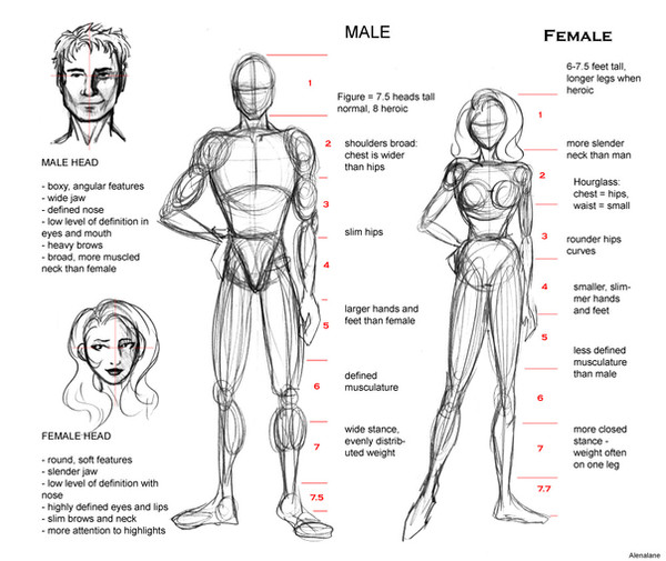 Note: 7.5 heads does not equal 6'0"; it's a measure of proportions, not height, as the heads can be scaled or shrunk depending on the character.