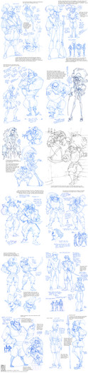 I'll be honest, I rarely use the head-proportions technique because I'm already comfortable enough drawing various body types. However, I get asked plenty of times how to draw people, so I pulled out my notes from drawing class and got the OCs to volunteer.
