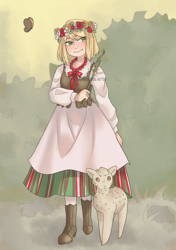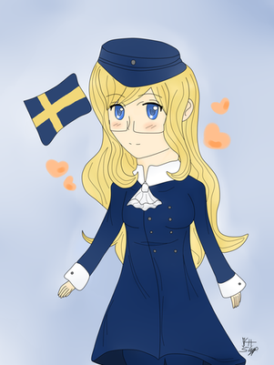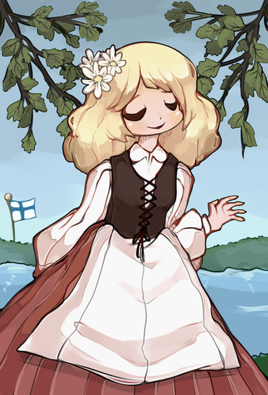 I really like how you decided to draw your own character for the holiday, instead of nyotalia's sweden. I mean there was nothing wrong with the fanart, of course, but since you've got an oc from sweden, why not draw her instead? it might give you a little more creative room too, since I imagine storm's quite different from nyotalia sweden. I like the bright, cheerful simplicity of the piece; I don't mean to say it's plain, since it's not, but sometimes simple can go a long way. and storm seems like the type to not want a lot going on, so it all works together. if that made sense lol. I also like the flower crown she's wearing and the blue-and-white top she has on instead of her usual dress. nothing wrong with the usual, but it's nice to give the characters different clothes from time to time