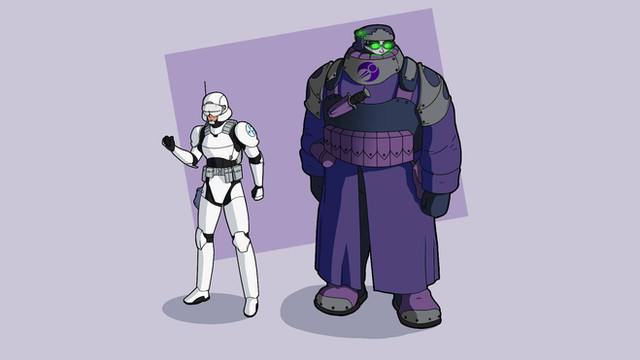 Spirit Troopers are death spirits that have chosen to be weaponized in military applications by Corruption, the bad guy faction. Trained by their siblings and their Corruption employers, a special gift is given to them, the Spirit Trooper Armor. This is a suit of armor built for individual spirits and is designed with death spirits in mind (most death spirits just wear armor stolen off of defeated human enemies) and is completely unusable by humans. Acting as both protection and an ID, the armor is all one unit, with the flexible bits and solid armor connected together. It has a small hole in the back that looks like the fuel hole in a car that the spirit goes through and completely fills the inside of the suit in order to put it on. The suit protects them from the outside world, insulating them from moisture in the air that can be annoying, and stopping equally annoying gunfire, lasers, bombs, and missiles through thick plating that combined weighs over 1000 pounds.