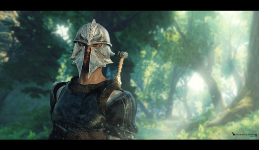 Love the DOF here. And the contrast between the shiny golden helmet and the dark armor works very well.