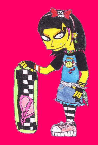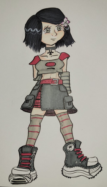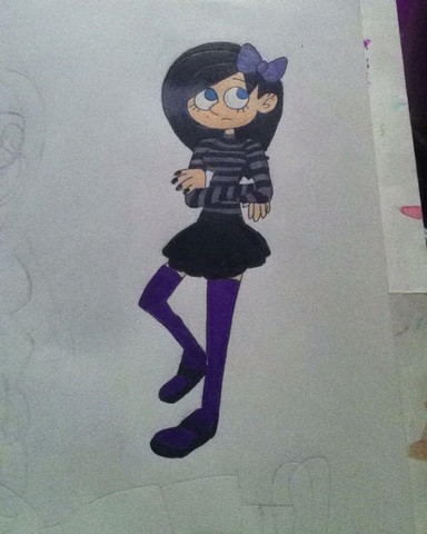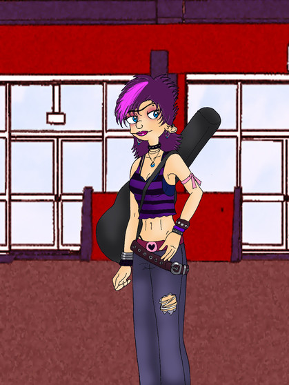 Commission forI know Andy doesn't wear colours, but black oil pastel is awfully hard to work with; it tends to muddy out the details. I ended up mixing purple and grey for his hair. Therefore, this probably isn't his style, but he still looks cute.