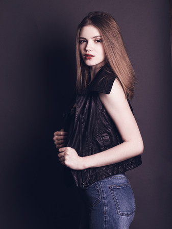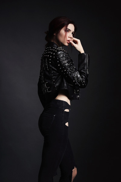 #beautiful #cute #fashion #leather #model #portrait #red #redlips #redlipstick #studio #suede #woman