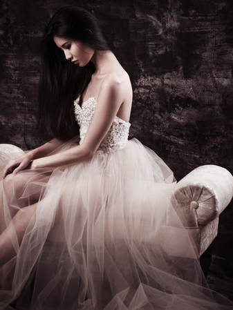 #couture #dress #model #painting #pearl #pearls #studio #tulle #woman #couturedress