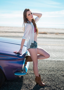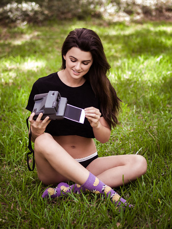 This photo of Hunter here makes me want to reach out & kiss her! Sweet pose & colorful shot that once again shows off her pretty face & sexy legs well. Cute doggie too