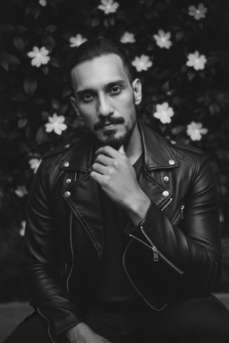 #backdrop #editorial #guy #handpainted #leather #leatherjacket #man #studio #whitetank #guyfashion #guysfashion