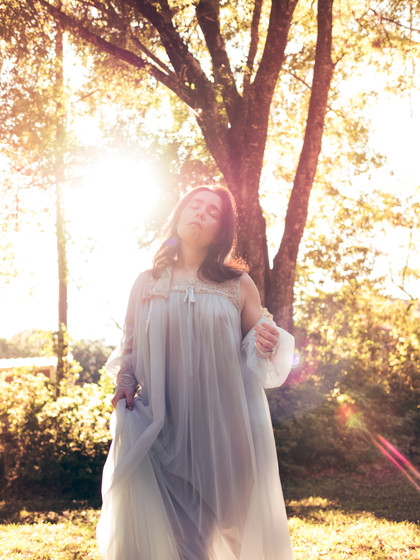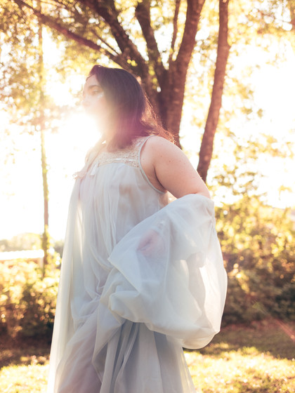 This month's theme for my self-portrait group was "Pisces." As a Pisces myself, I strongly connect with the characteristics of the water sign, a daydreamer to a fault and heavily emotional to the point that I feel like my emotions are incredibly transparent. I went with blue to represent the sign and tried for something dreamy with a wistful, melancholic vibe. I absolutely hate the process of self-portraits. I hate seeing my body and face in angles I don't usually see it in, and I just hate the general idea of not knowing how to pose and see exactly what I'm doing. It's a struggle. And yet, I actually really end up liking the few images I chose from this set, so I guess its worth it?Self-portrait in a vintage nightgown and peignoir in the golden hour