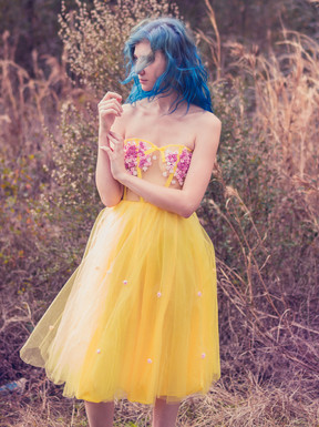 My friend Taylor (who is a photographer, a sometimes model, and also a vegan cheese maker (!!!), got in some dresses from one of my favorite designers I Found Lucy.Β Her designs are a fairytale dream and they were especially fun with Taylor's blue hair! Hope you enjoy this fun little seriesFeatured in Girl Magazine's 1st issue (www.girlmag.ca/ )