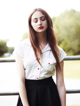 -You know how I told you I shot all film on this shoot? I lied. I shot less than a 100 digitals, because I got scared that I was going to screw up the film. Some of them were too pretty to not edit though! The light was on-point this evening!Ok...so I forgot about these. They're over a year old, but it was my first full model shoot with 35mm film. I probably forgot about them because they were submitted to a magazine for a special film issue, they got in, and then the magazine completely dissapeared off the face of the earth. But I don't think they should just rot away on my computer, and it's film, so I'm going to go ahead and submit them anyways! And I don't think anybody would complain about seeing Brooke's lovely face It was a simple concept about a young girl leaving home and finally feeling free out in nature. The shoot was all styled in polka dots, because I'm rather fond of them!