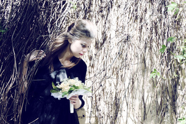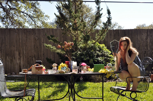 I like how you mixed the romantic style of the garden, little white table and look of the model with the modern feeling that the artifitial foil has.