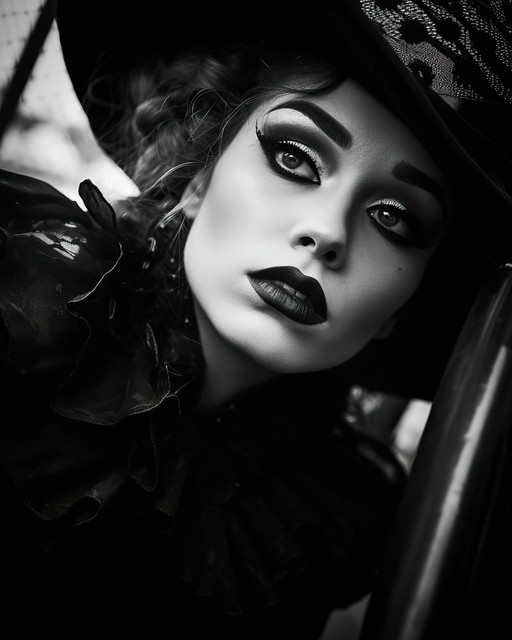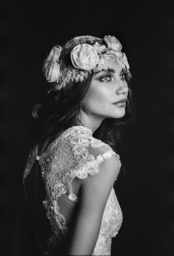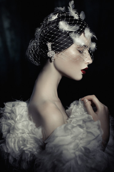Every year I try to make at least one editorial with Autumn and Halloween in mind. Halloween is my favorite holiday, because I love the dark and eerie tones that this season brings to my work. This editorial is named "Lenore," after Edgar Allan Poe's ill-fated young lover in "The Raven." I always imagine Lenore as a sweet, young bride, who becomes, after her death, a dark memory for the narrator of the poem, a painful reminder of the love he's lost. The transition throughout the poem is something I wanted to capture in the series as a whole, as she eventually turns, in his mind, into the Raven itself, dark, twisted, and haunting and nothing like the once beautiful memory of his youthful bride.