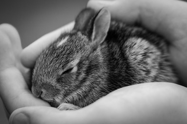 This baby love fits right into your palm, and your photograph reminds us that little creatures have the right to dream in a human hand... on one hand... On the other hand, we are way bigger and way more threatening than this sweet baby and that that same hand can trigger a rifle and hunt or kill this baby... In terms of the impact, it is the epitome of power and innocence.