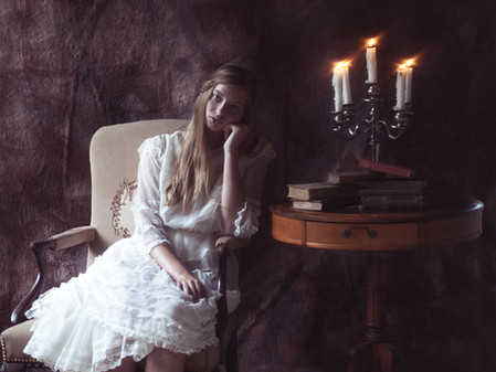 I wanted to get back to my roots for this shoot. I had been doing a lot of styled fashion shoots at that time, as well as several commissioned shoots that didn't let me get very creative. But when Brittany visits, we always have to come up with something fun and pretty to do! For this I took inspiration from the upcoming month of October. I wanted to incorporate Autumn as best as I could, even though I live in Florida, so we used dead branches and bare ground as a start off point for the location. To contrast, I styled it with really soft and beautiful vintage white and cream-colored pieces. The concept was for the shoot to be about fleeting youth and eventual decay.