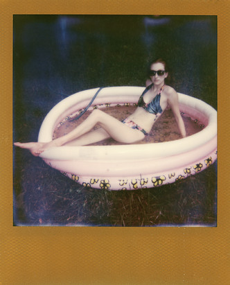 #bathingsuit #dreamy #flowers #hazy #kiddiepool #model #pool #redhead #summer #swim #swimsuit #vintage #woman