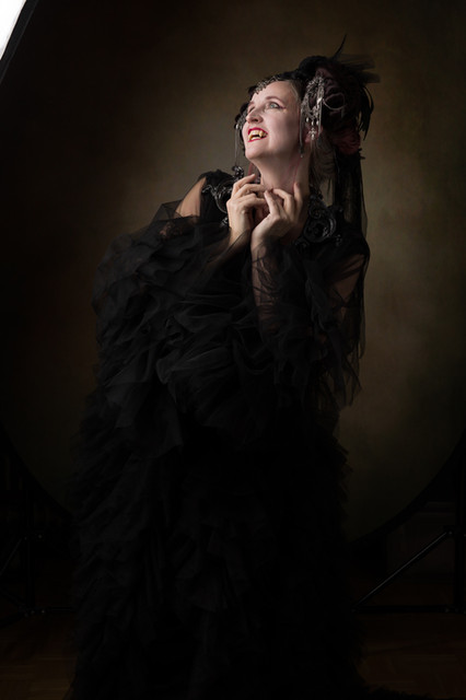 Every year I try to make at least one editorial with Autumn and Halloween in mind. Halloween is my favorite holiday, because I love the dark and eerie tones that this season brings to my work. This editorial is named "Lenore," after Edgar Allan Poe's ill-fated young lover in "The Raven." I always imagine Lenore as a sweet, young bride, who becomes, after her death, a dark memory for the narrator of the poem, a painful reminder of the love he's lost. The transition throughout the poem is something I wanted to capture in the series as a whole, as she eventually turns, in his mind, into the Raven itself, dark, twisted, and haunting and nothing like the once beautiful memory of his youthful bride.