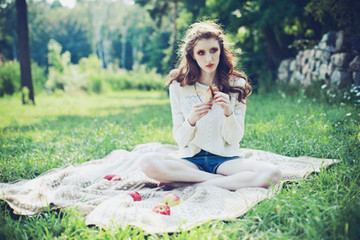 One of the most naturally talented and enjoyable 16-year-olds I've ever shot with! I see a bright future for this lovely girl! We had an absolutely lovely day dressing her up and exploring with the accompaniment of film, polaroids, and my usual digital equipment. The skirt of this dress reminds me so much of picnics that I couldn't resist bringing her out on the lawn for a little mini picnic"Efflorescence" for Lucy's Magazine