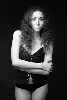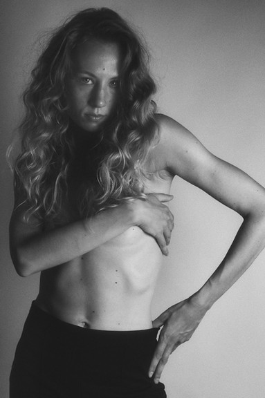 I particularly like the way that whole lower left quarter points to, and so draws attention to, the face. There is the curve of her back, her arm, and between those two there is the light area that descends from her shoulder blade. The gentle shading of the bone and muscle structure in her back adds character and prevents the arch of the back looking bland. I’ve seen similar poses with part of the breast showing, but that would just be a distraction here (as well as possibly inappropriate for the model).