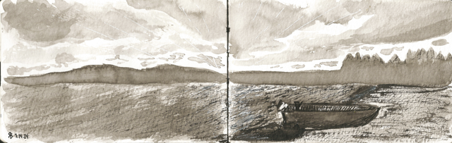 Continuando con el descubrimiento del paisajismo en mi vida, intenté trabajar en un tamaño diferente. Todos los dibujos que he subido hasta ahora fueron hechos en hojas de 150grs de grosor y en las medidas de 12cmx20cm.