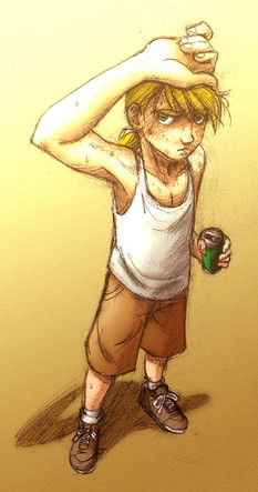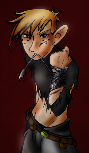 I drew this pic at the same time as the previous Drew pics but didn't think it was good enough to color. Of course when I told Loon about it he wanted to see it! That prosthetic leg looks wrong to me, but other then that I think it came out okay. Sadly this will be my last picture colored with a Wacom tablet, because tomorrow is my last day of finals and I'm going back home, where there are no tablets.Drew belongs to