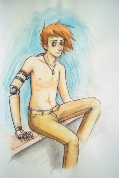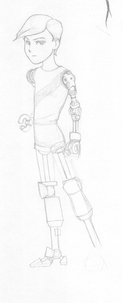 Oh, man, this is so awesome! You really captured a fantastic expression in his face ... a subtle mix of sadness and anger that Drew feels towards his artificial leg. Yeah, he wasn't human for long in my stories, but that artificial leg is an important part of his history and his psyche.