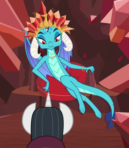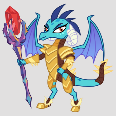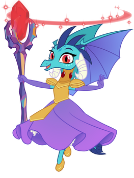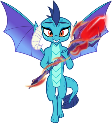Ember is a great dancer, as her esteemed Equestrian guests are about to find out. As a fire dancer, Ember's movements resemble flames. She stays on the ground, since fire doesn't detach from its base, and makes both flowing and flickering movements. The motions of her wings cast fire-like shadows on the walls behind her.