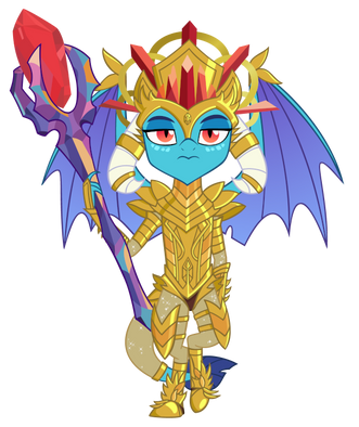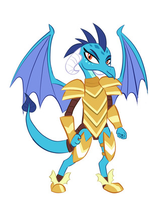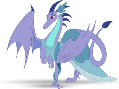 Her makeup is symbolic as well. The chin stripe signifies a few things. A dragoness wearing a chin stripe is unmarried. This stripe used to be a teardrop-shaped dot, as chin dimples were considered attractive in dragonesses when this tradition started. It evolved into a stripe over time. The stripe has gotten wider and is sometimes drawn forked, to resemble a tongue. This signifies the playfulness and youth of the wearer.