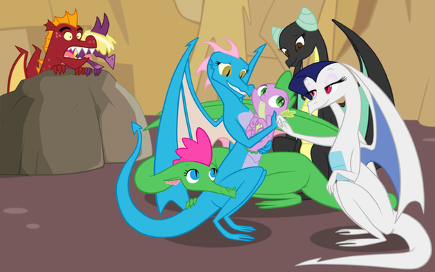 Adult Spike and Jade with the mane 6, as requested byRelated content