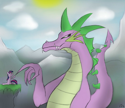 Good to see adult Spike again...and not ripping the town apart XDDDD Love how you drew this!