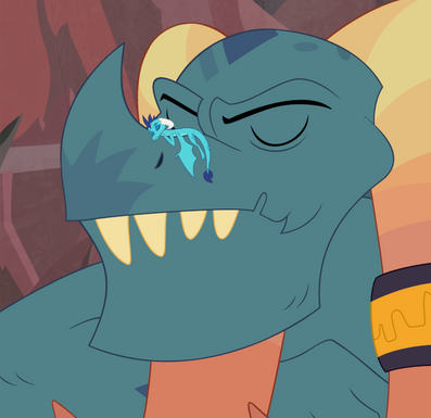 Torch: Ember, honey, be careful. Daddy's horn is not a toy.Β