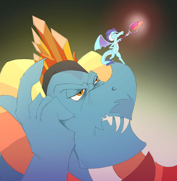 Aaaaw! I've never seen fan art of Ember as a baby dragon before. Just look at her using her daddy as a playground. So cute!Β Β