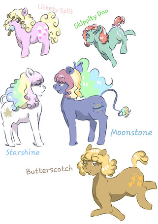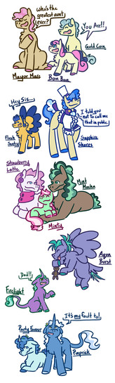 As you could probably guess, Moth is... a little insecure about how she looks. She knows she's pretty, and her friends are nothing but supportive of her despite her unusual appearance, but she can't help feeling like she isn't quite right. She's got holes in her legs and a crooked horn and weird silky plates on her back... Sometimes she just wants to look like the mares she sees in magazines and in movies. Luckily, thanks to being half changeling, she can! Whenever she wants to fade into the background, she assumes one of her pony counterparts: the sweet Apple Crumble, the boisterous Partly Sunny, or the elegant Amethyst Gleam. Sure, relying on alter egos to fit in isn't the best for her self esteem, but it helps in the moment. Certainly these problems won't persist or get worse as she gets older, right?Related content