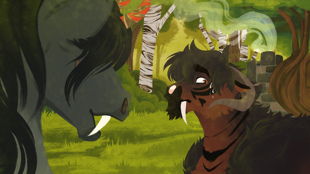“Rottie, stop!” Scrapjack screeched through the dust in her lungs. Her companion ignored her with ease. The cave was now completely illuminated with Rotgut’s magic, her horns glowing like beacons as the spell reached its crescendo. Arrows continued to fly at them, most being deflected by the sheer force of swirling magical energy. From her position on the ground, Jack couldn’t see how many of them had managed to reach flesh. Judging by the way the yak was breathing, it hadn’t just been the first two. Rotgut tilted her head just enough to put Scrapjack in earshot.