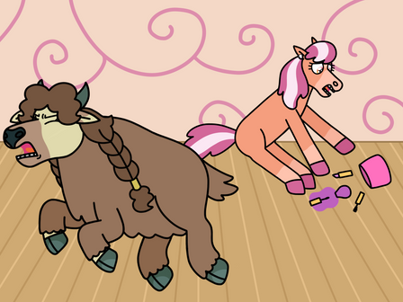 “Ha! Knew ya wouldn’t go down that easy, ya big lug!” Jack cheered. She threw her arms out and wrapped the yakicorn in a hug, mindful of her injuries. Rotgut huffed out a laugh and let her hoof fall back to the floor.