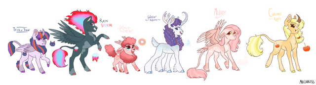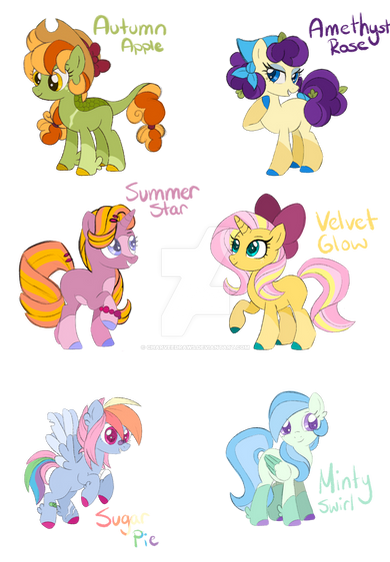 Asked my discord buddies for random mane six ships to make a nextgen out of, and they pulled out some real good ones! I love all these little guys a lot! I wanted em to be kinda generic but still loveable :3