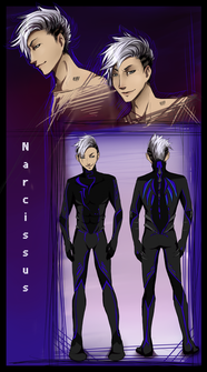 - Manual Control: Essentially, his markings will turn a dark burgundy when someone (usually Edmund or Regina) takes direct control over him. This can be from a computor or a mobile device connected to that same mainframe, depending on what kind of access they are. This is extremely difficult for anyone besides whoever's designated as his 'owner' to do, but it only takes his 'owner' the press of a button. In this state, he has little to no control over his body, actions, expressions, tone, speech... sometimes even his senses. It's the most horrifying feeling in the world for him; it's almost like he's being possessed and is consciously aware of it the whole time. He'll do anything possible to avoid this, especially at the beginning of the story. It's kind of what makes him so easy for Edmund and Regina to control; all they have to do is threaten manual control - or cold storage - and he generally folds pretty fast.