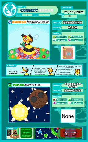 Cosmic rarely talks about anything seriously. Even if their goal is to find other aliens they mostly are just vibing as a comic relief in the background. They are not in a hurry to find another alien as they have a small fear they might be destined or tasked with something they have no interest in being part of. (They will never voice this fear aloud)