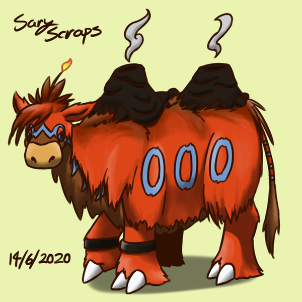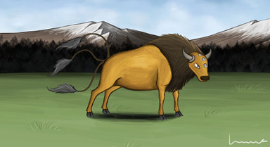 The fur looks like we can actually touch it and the shape of the head makes it like a realistic cow like creature ;v; I especially love the zone around the eye and its fab eyelashes! Also, very well painted background~