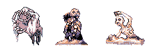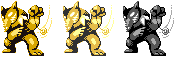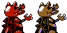 Tricket has large back legs with spikes on them (Those replicate the hairs on crickets legs) and his antenna are thick and split like a jesters hat. I know it's hard to see I drew it that way with the way the sprite is...Sorry. D: