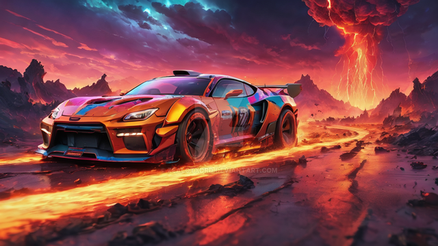 #car #vehicle #digitalart #wallpaper #drama #photorealistic #photography #racing #characterdesign #beauty #burnout #landscape #lava #volcanic #volcano #burninggodzilla #hyperdetailed #speedpaintvideo #ultrarealistic #fire