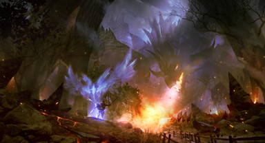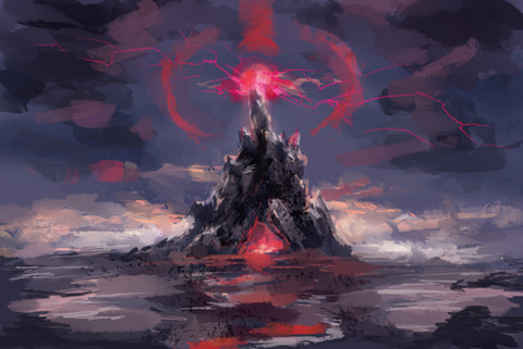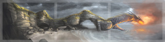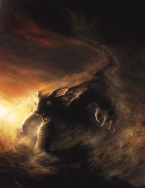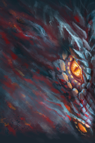 The glow of the lightning and the fire in the dragon's mouth contrast nicely with its dark skin, and the painting technique is great~