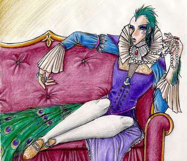 Parrots were included in paintings as symbols of sexual license and excess, so I've included one here. It's (obviously) a cockatoo and meant to represent my m!Surana, because… well. If you saw the last piece I posted, you know that he sort of looks like one. X_x;