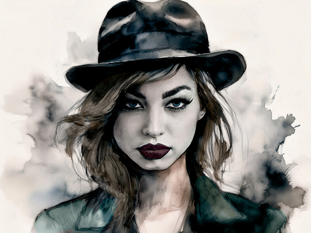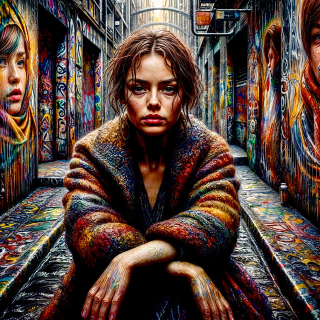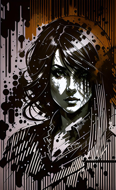 Raining In ItalyInk sketch of a girl clad in a black leather jacket standing in the rain in Italy, her expression tinged with sadness, capturing this emotion through delicate lines and a whimsical, dreamy style, executed on sepia-toned paper that presents a minimalistic yet striking contrast, the artwork enhanced by calligraphic ink techniques, freehand drawing approaches, and subtle brown-coffee hues on brown-colored paper, finished with the author's