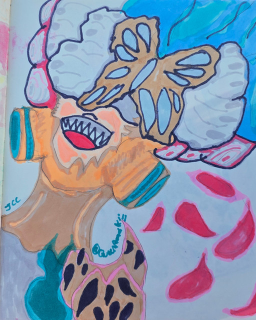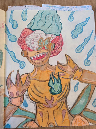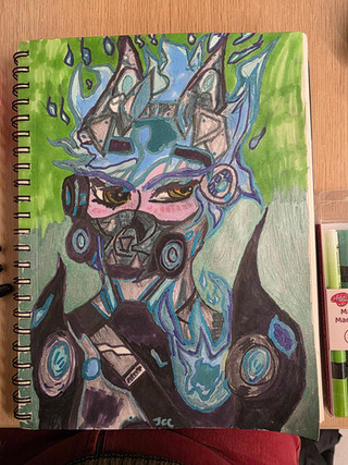 Raining glory, its markers on Canves. Took a while to do but I did it in one sitting. I had other sketches like this work, but not the same.sorry it took to camera so bad