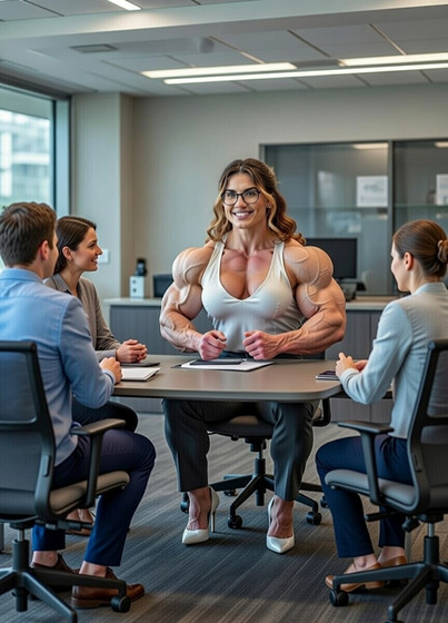 #ai #athlete #boardmeeting #fitnessmodel #fitnesswomen #goddess #muscles #office #work #femalebodybuilder #hugemuscle #musclewomen #muscularwomen #femaleathlete #musclequeen #athleticwomen #aiartwork #queenofmuscle #queensofmuscle